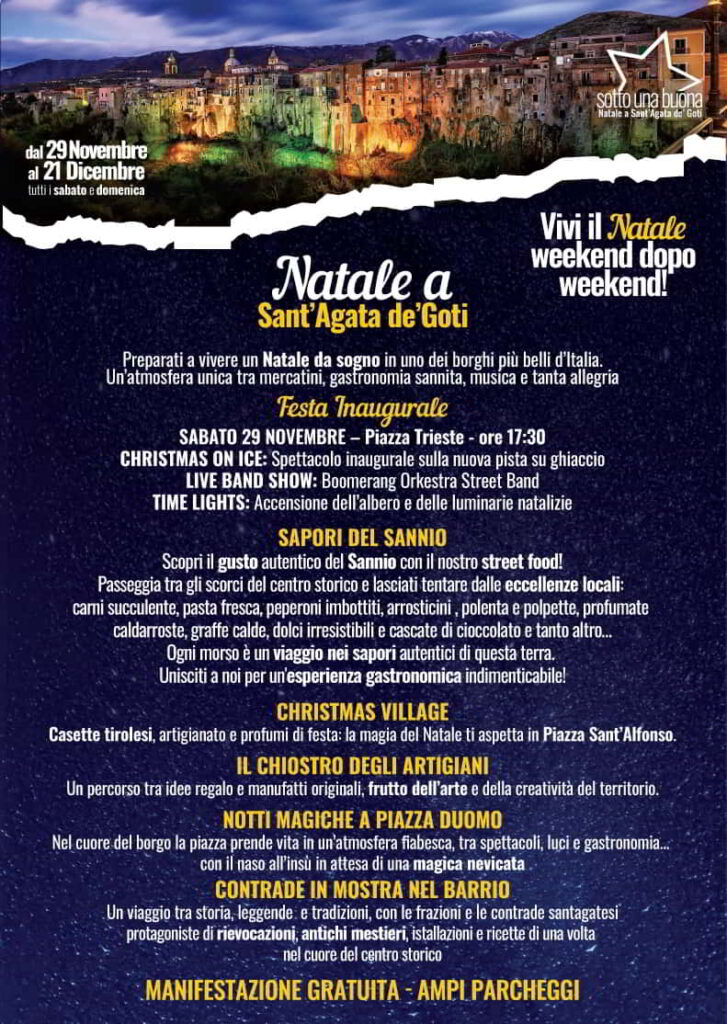 Dal 29 novembre al 21 dicembre 2025, ogni sabato e domenica, Sant’Agata de’ Goti diventa il cuore pulsante del Natale: con la seconda edizione di Sotto una Buona Stella.