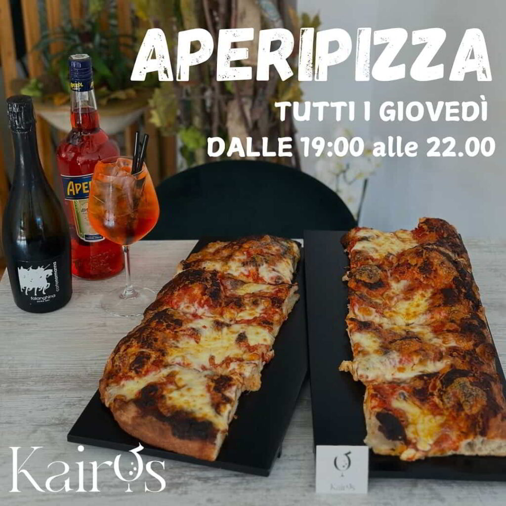 Ogni giovedì dalle 19:00 alle 22:00 Aperipizza, presso il Kairos di Telese Terme, in provincia di Benevento. Un mix perfetto tra sfiziosi tranci di pizza appena sfornata e cocktail creativi per rendere le vostre serate
