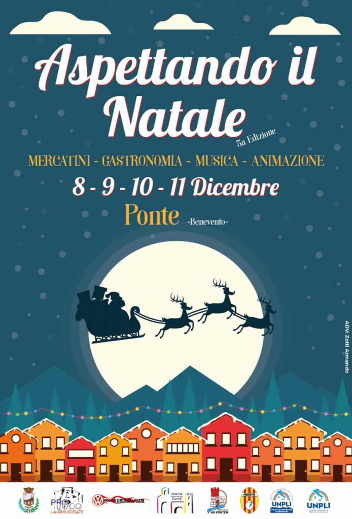 La Pro Loco La Rinascente, in collaborazione con il Forum Giovani Ponte, ASD Ponte 98, pro loco Ad Pontem , Volks Drugen Club, ASD Sporting Ponte e con il patrocinio del comune di Ponte vi propone la 5ª edizione di “Aspettando il Natale”.