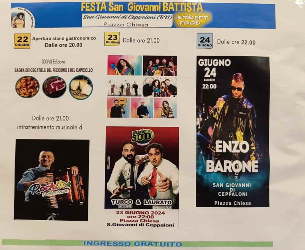 In occasione dei Solenni Festeggiamenti della Natività di San Giovanni Battista, patrono di San Giovanni di Ceppaloni