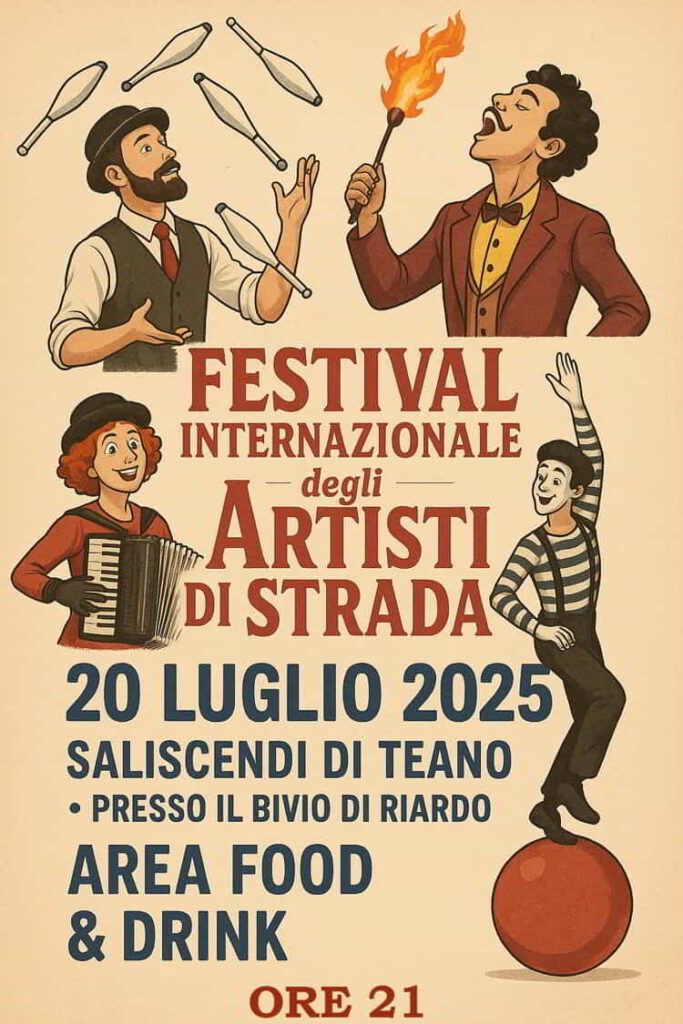 Il 20 Luglio 2025, va di scena il Festival Internazionale degli Artisti di Strada in località Saliscendi di Teano in provincia di Caserta.