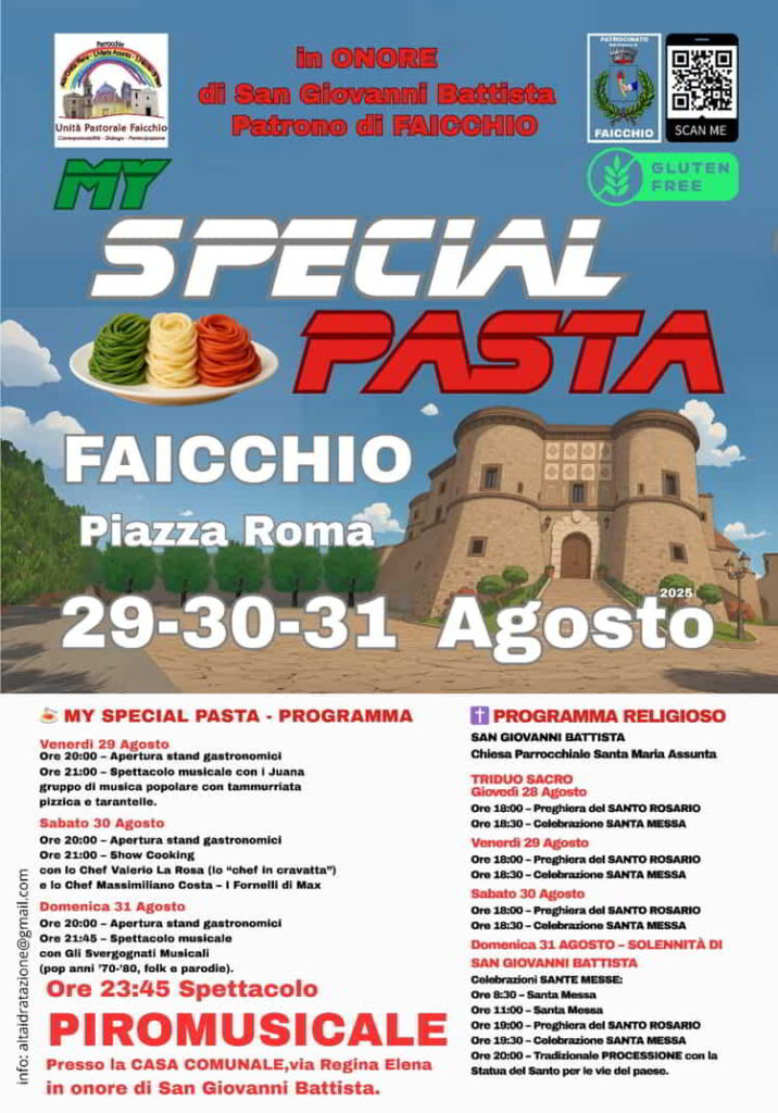 Per tutti gli appassionati di pasta, il 29-30 e 31 Agosto 2025, a Telese Terme in provincia di Benevento in piazza Roma, andrà di scena l’evento My Special Pasta.