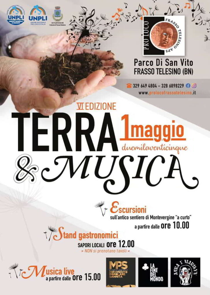 Anche quest’anno, con tantissime novità, ma sempre fedele allo spirito che caratterizza la manifestazione, torna con la sesta edizione di “Terra&Musica“. Presso l’arena di San Vito Frasso Telesino(BN), mercoledì 1 Maggio 2025 a partire dalle ore 10.30.