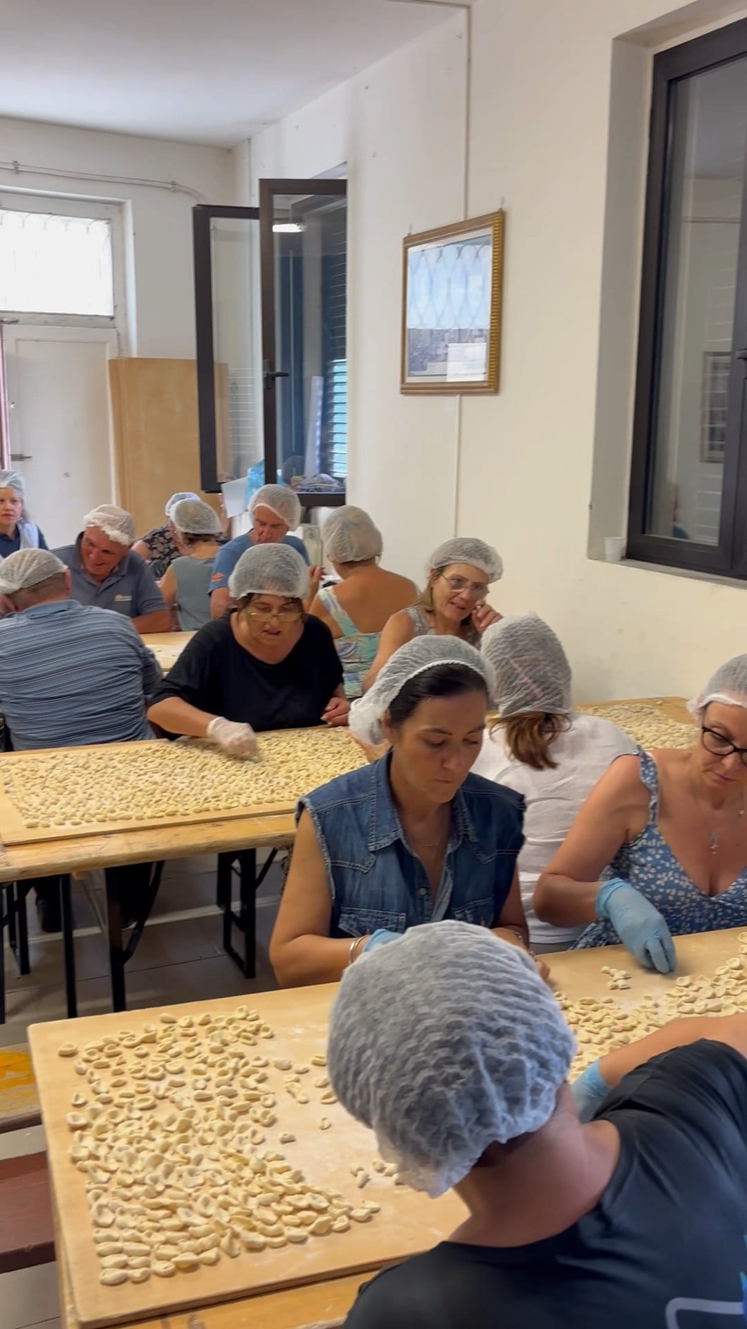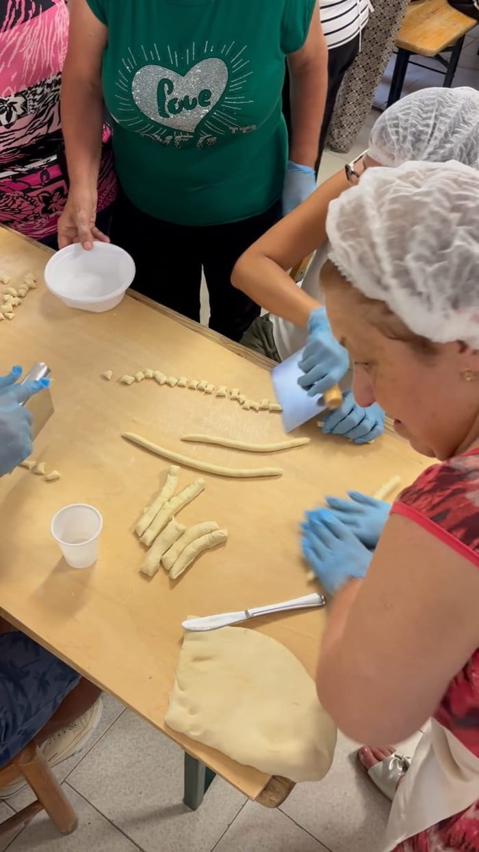 Il 13 agosto 2025, la comunità di San Marco ai Monti si è riunita nella sala parrocchiale per la tradizionale anteprima della sagra, un momento di pura convivialità e artigianalità che precede l’evento principale. Una vera celebrazione multigenerazionale che vede ogni anno la partecipazione di massaie esperte, persone anziane custodi della tradizione, ragazzi e bambini del paese, e persino un giovane arrivato da New York, tutti uniti per dare vita al rito più antico e prezioso: la preparazione del Cecatiello fatto completamente a mano.