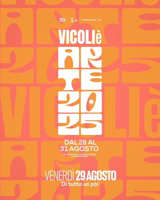 Nel cuore del Centro storico di Ariano Irpino, in provincia di Avellino, andrà di scena l’evento Vicoli è Arte dal 28 al 31 Agosto 2025.