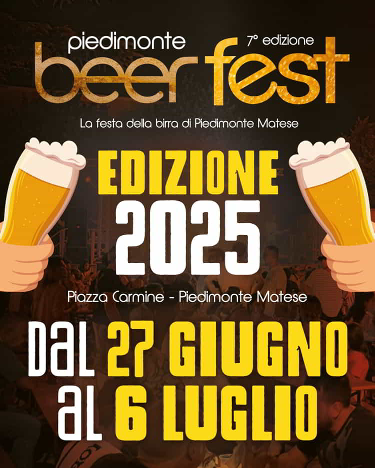 Dal 27 Giugno al 6 Luglio 2025, torna la settima Edizione del Beer Fest di Piedimonte Matese in provincia di Caserta. Ingresso gratuito e stand