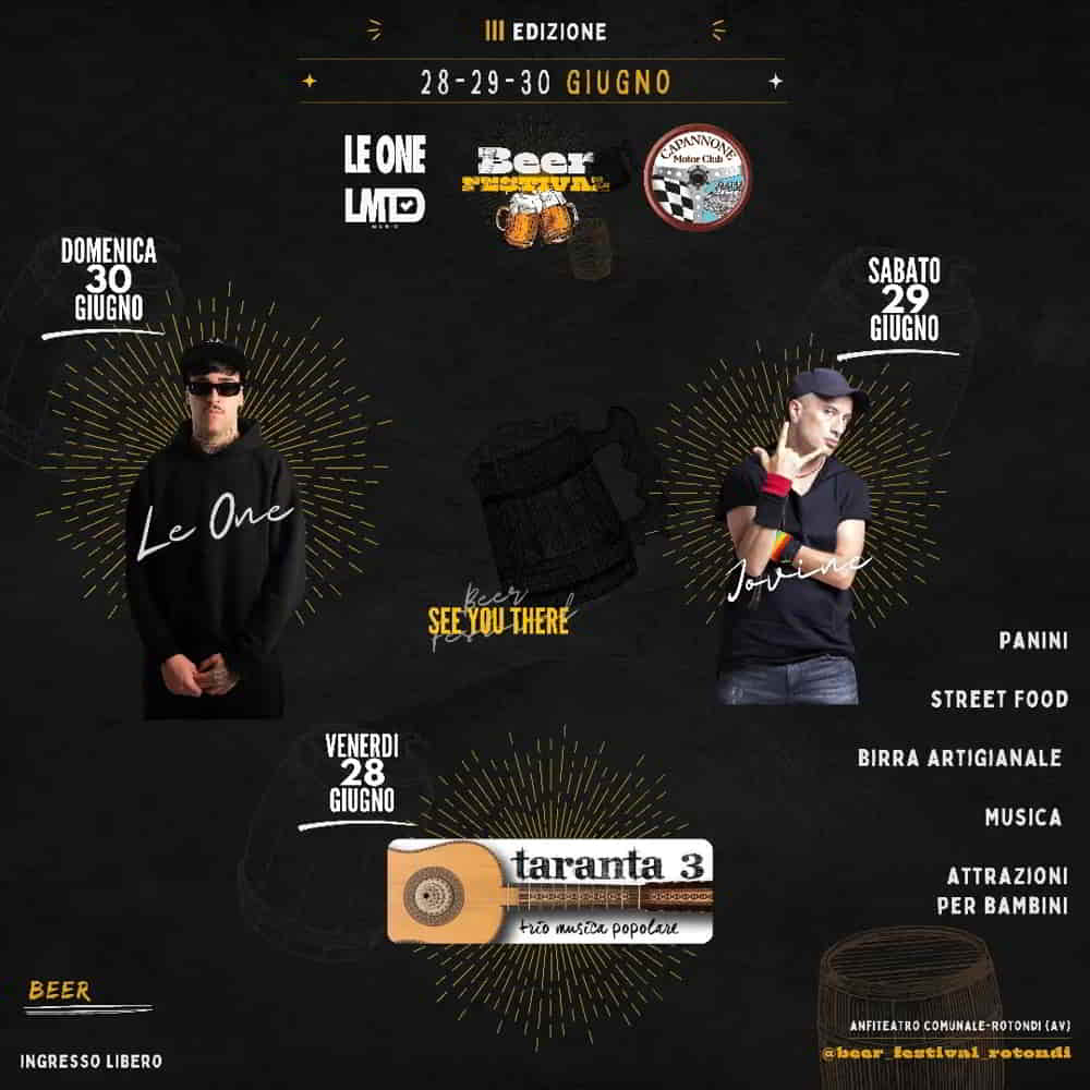 A Rotondi in provincia di Avellino, torna il 4,5 e 6 Luglio 2025, la IV edizione del Beer Festival. L’evento si terrà nella villa comunale.