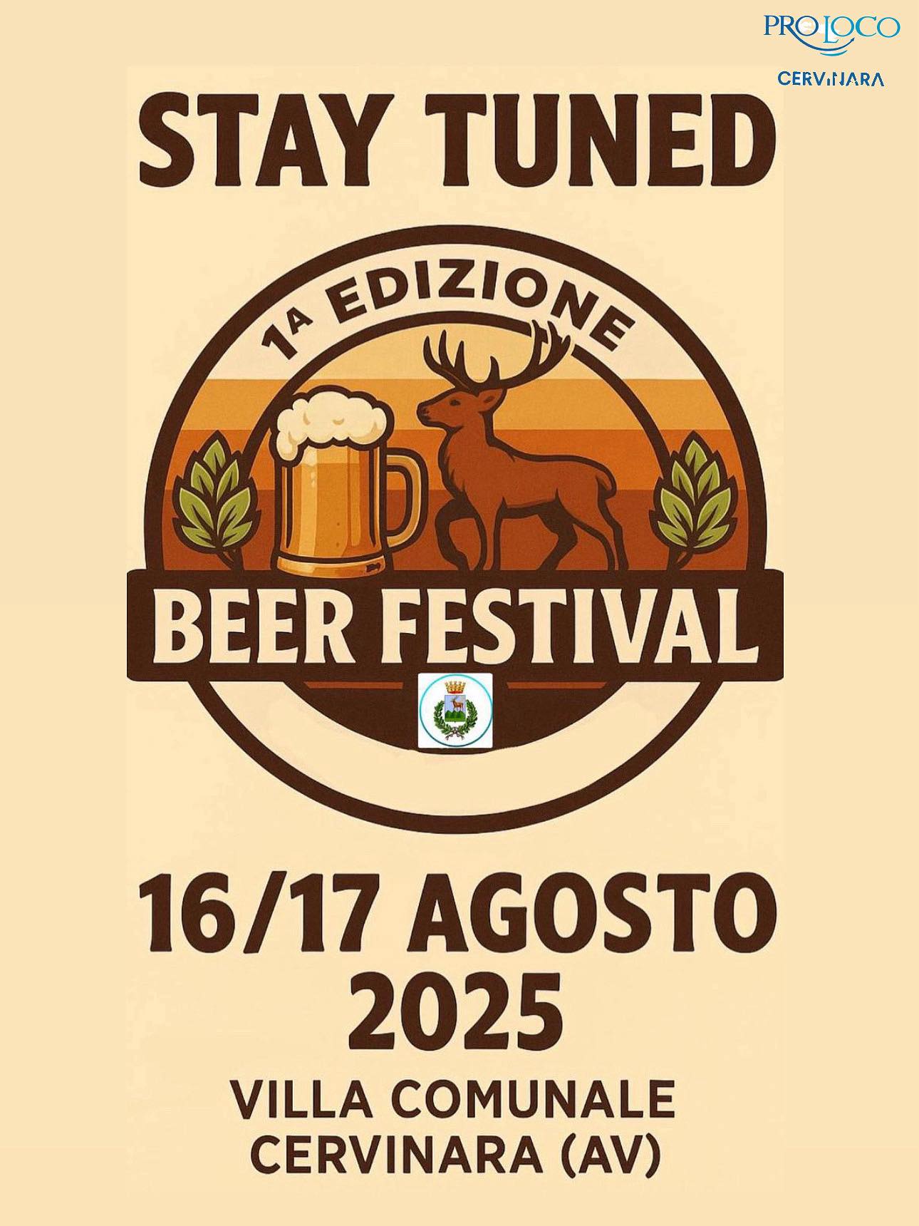 A Cervinara, in provincia di Avellino, 16 e 17 Agosto 2025, in Villa Comunale, andrร di scena la prima edizione del Beer Festival.