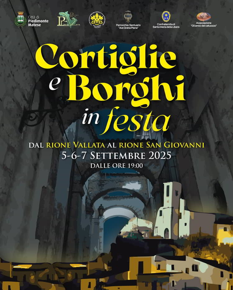 Dal 5 al 7 Settembre 2025, il Comune di Piedimonte Matese organizza Cortiglie e Borghi in Festa dal Rione Vallata al Rione San Giovanni.