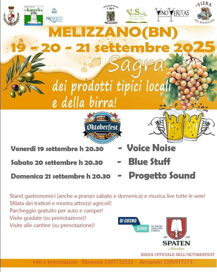 L’associazione vivisannio, insieme al comune e alla pro loco organizzano dal 19 al 21 Settembre 2025, la Sagra dei prodotti tipici locali e della birra,