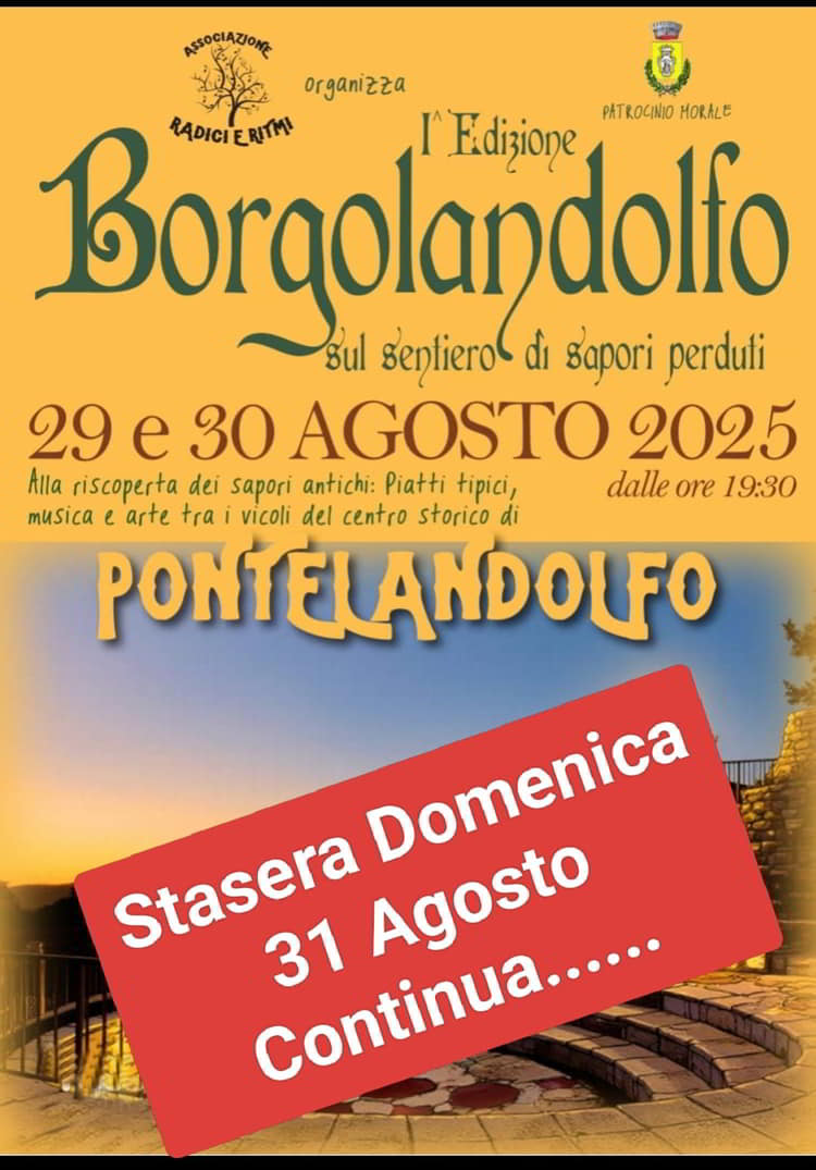 Continua anche il 31 Agosto 2025 l’evento organizzato dall’Associazione Radici e Ritmi organizza la I edizione di Borgolandolfo, il 29 e 30 Agosto 2025, a