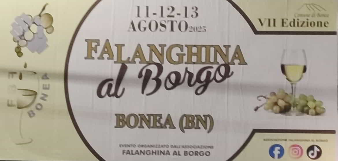 Nei giorni 11-12 e 13 Agosto 2025, a Bonea in provincia di Benevento torna l’evento Falanghina al Borgo, a cura dell’Associazione Falanghina al Borgo.