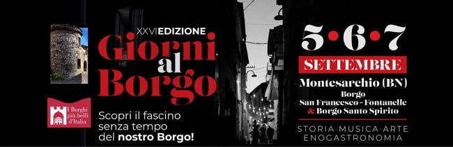 La Pro Loco di Montesarchio presenta la XXVI Edizione di Giorni al Borgo, il 5-6-7 Settembre 2024, tra Borgo San Francesco – Fontanelle e Santo