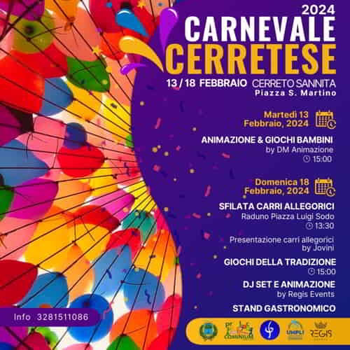 La Pro Loco di Cerreto dopo il successo del 2023, ripropone il Carnevale Cerretese l’evento per avverse condizioni metereologiche Γ¨ stato rinviato al 18 Febbraio