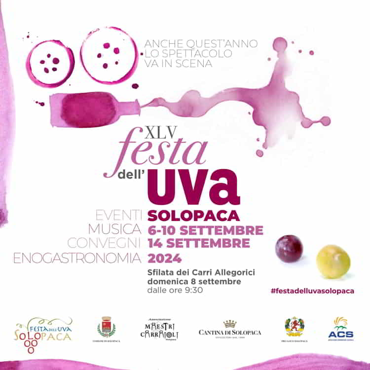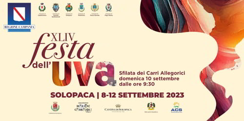 XLVI edizione della Festa dell’Uva a Solopaca in provincia di Benevento, andrร di scena dal 12 al 16 Settembre 2025 e il 20 Settembre 2025.
