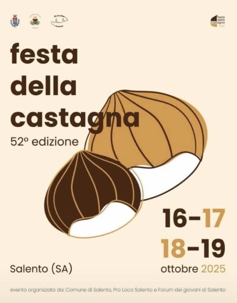 A Calvanico, in provincia di Salerno, il 9-10-11 e 12 Ottobre 2025, 48° Sagra della Castagna. La locandina la trovate sul profilo di Luca Dell’Angelo, uno degli artisti che si esibirà durante le serate.