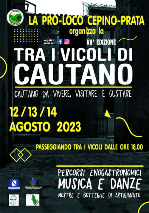 Grazie all’impegno della Proloco Cepino-Prata Cautano APS, anche quest’anno avrร luogo l’evento “Tra i vicoli di Cautano – Cautano da Vivere, Visitare e Gustare”, un