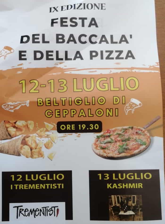 A Beltiglio di Ceppaloni, in provincia di Benevento, si terrร la IX edizione della Festa del Baccalร e della Pizza, il 12 e 13 Luglio