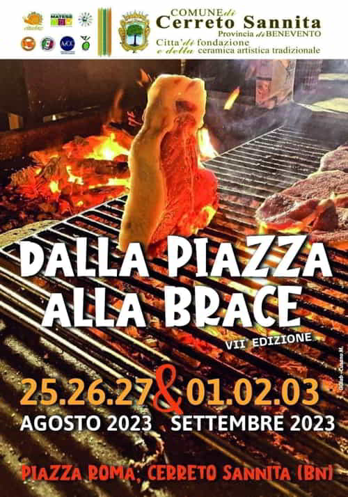 Il comune di Cerreto Sannita in provincia di Benevento, presenta la VII edizione della manifestazione Dalla Piazza Alla Brace, nei giorni 25-26-27 Agosto e 1-2-3