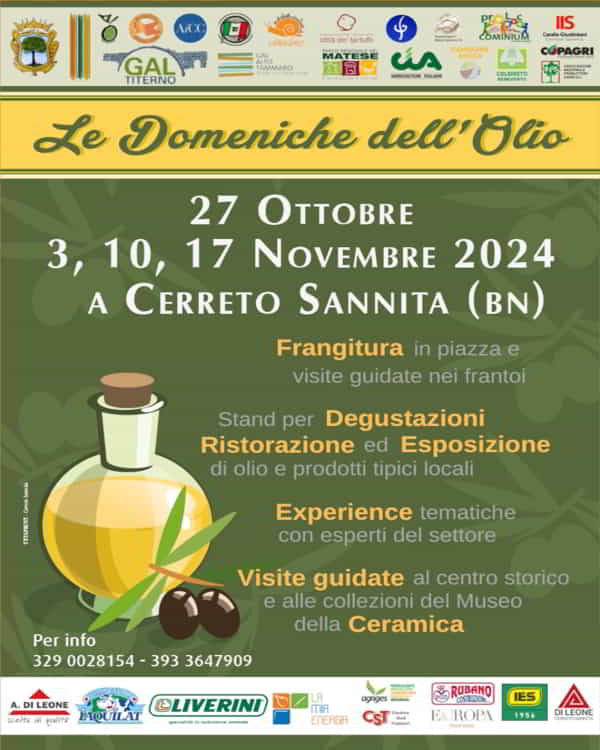A Cerreto Sannita, in provincia di Benevento, torna l’11 esima edizione delle Domeniche dell’Olio. I giorni in cui la manifestazione avrΓ luogo sono il 27