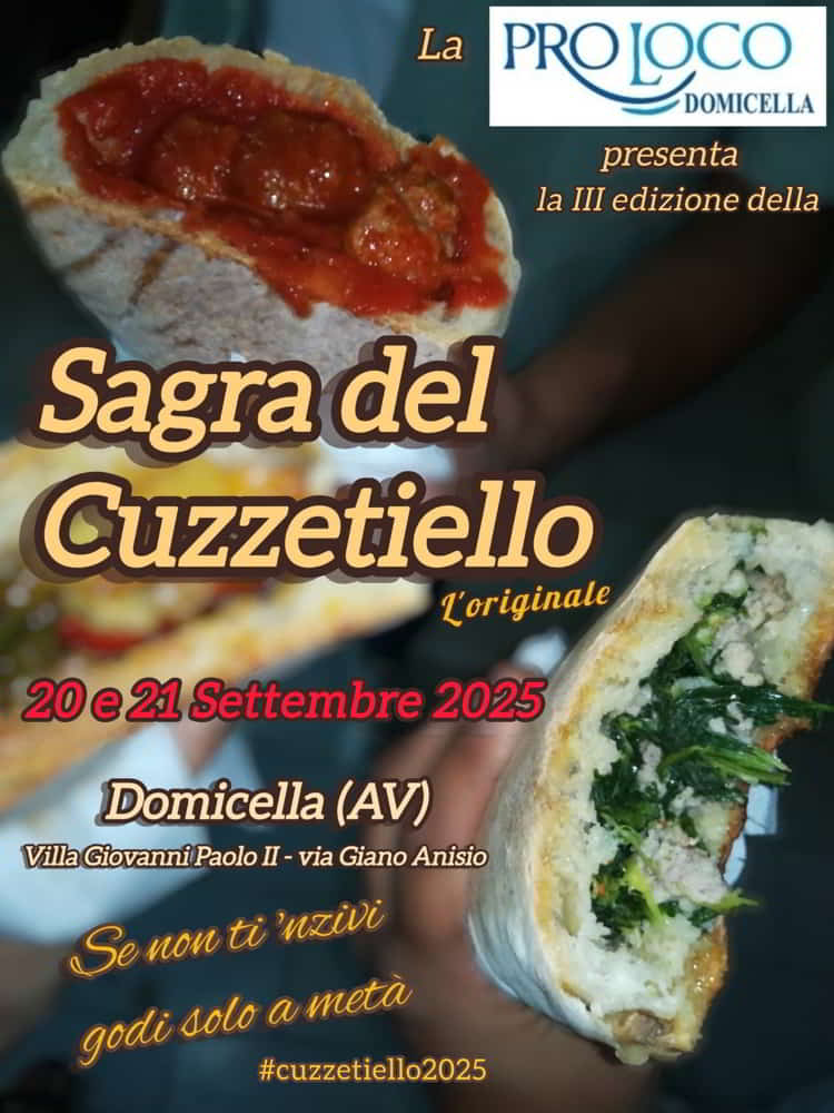 La Pro Loco presenta la III edizione della Sagra del Cuzzetiello – L’originale, il 20 e 21 Settembre 2025 a Domicella, in provincia di Avellino.
