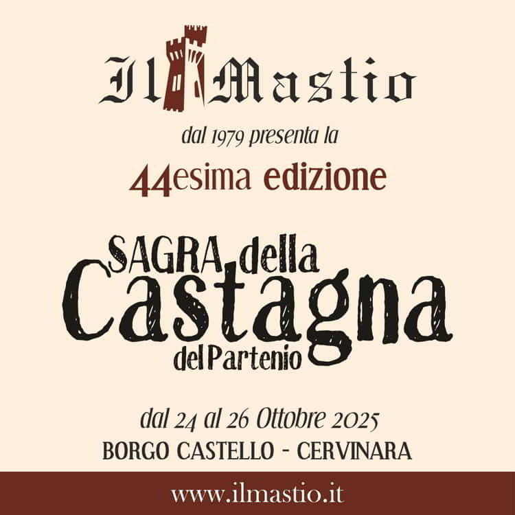 L’Associazione Il Mastio organizza la 44 esima edizione della Sagra della Castagna del Partenio, a Cervinara – Borgo Castello, in provincia di Avellino, dal 24
