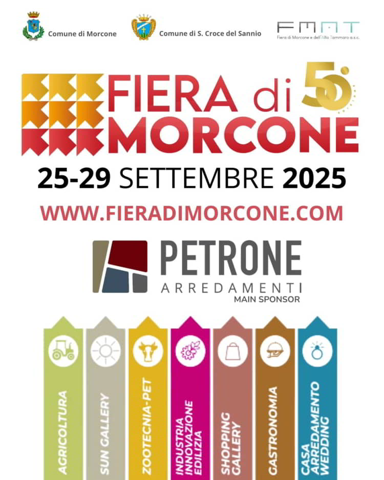 La 50Β° edizione della Fiera di Morcone si terrΓ dal 25 al 29 settembre 2025 a Contrada Piana. Dal lunedΓ¬ al venerdΓ¬ mattina lβ ingresso