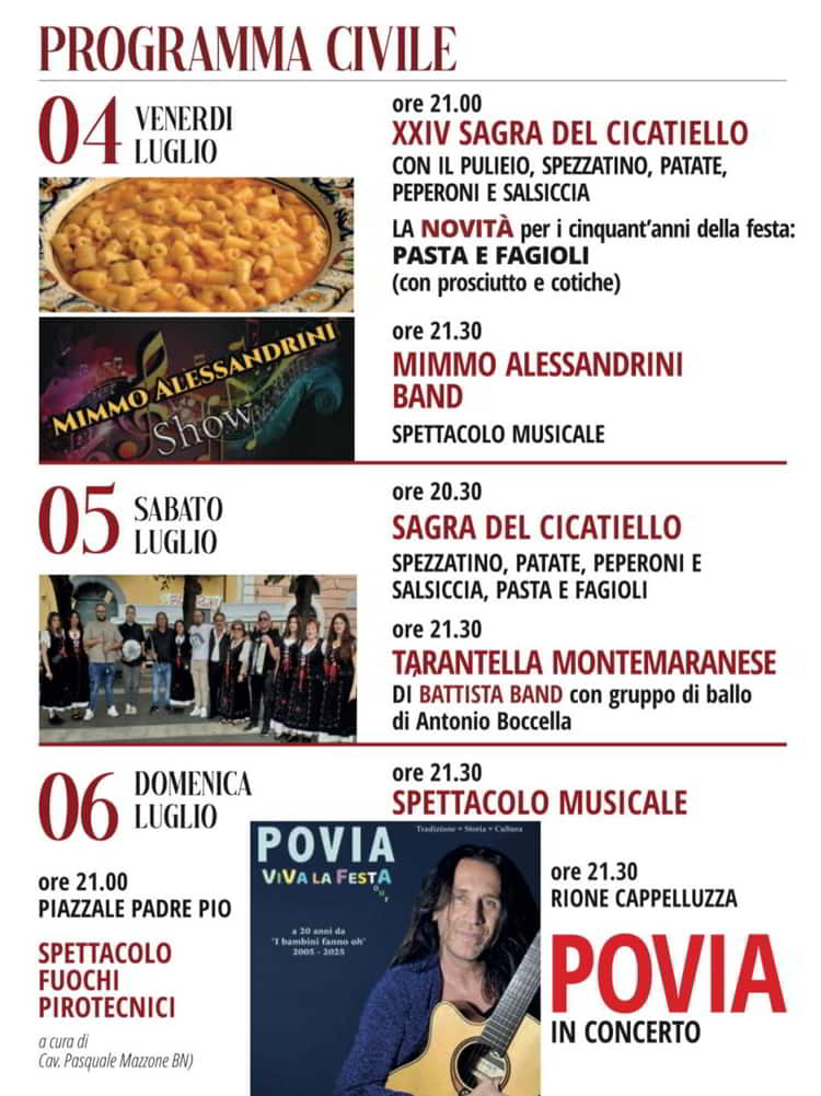 Dal 4 al 6 Luglio 2025, prendono il via i festeggiamenti civili in onore di Sant’Antonio e Santa Rita nello storico Rione Cappelluzza di Grottaminarda