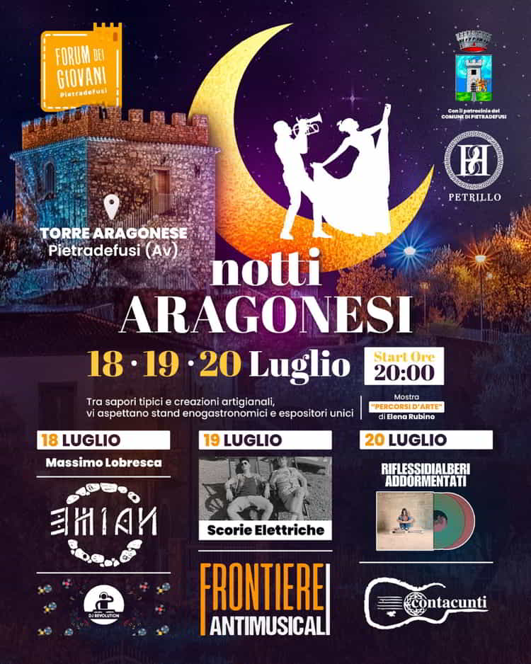 Il Forum dei Giovani di Pietradefusi presenta l’edizione 2025 de Le Notti Aragonesi. Tre serate magiche nel cuore del centro storico di Pietradefusi, in provincia