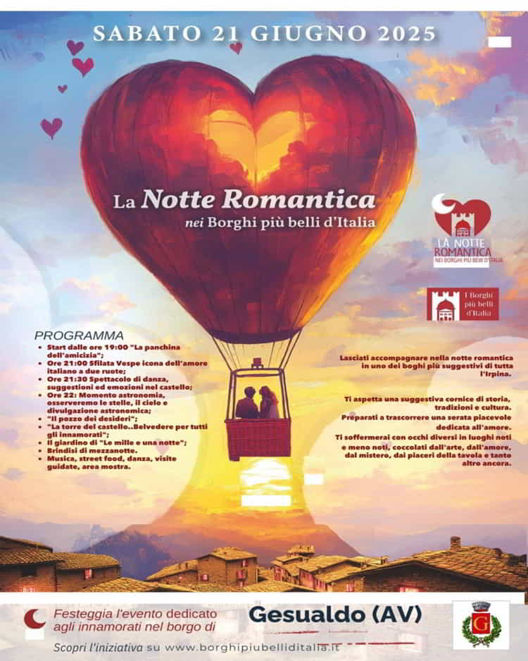 La Notte Romantica in uno dei Borghi piΓΉ Belli dβItalia. Lasciati incantare dal fascino di Gesualdo e vivi una serata dedicata allβamore, alla bellezza e
