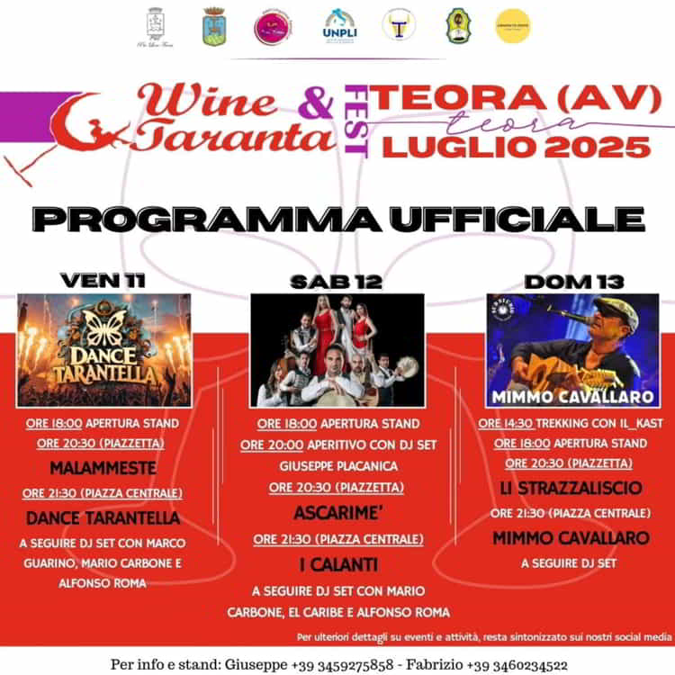 Torna l’evento piรน esplosivo dell’estate, Wine & Taranta, a Teora in provincia di Avellino, dall’11 al 13 Luglio 2025.