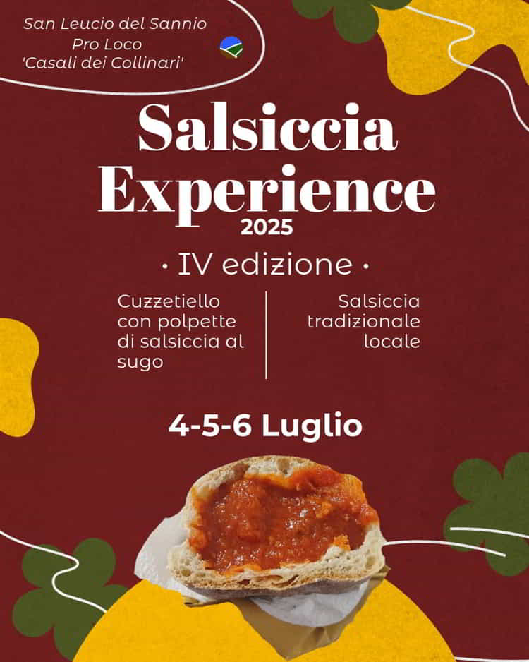 La Pro Loco di Casali dei Collinari e il Comune di San Leucio del Sannio presentano la IV edizione di Salsiccia Experience a San Leucio