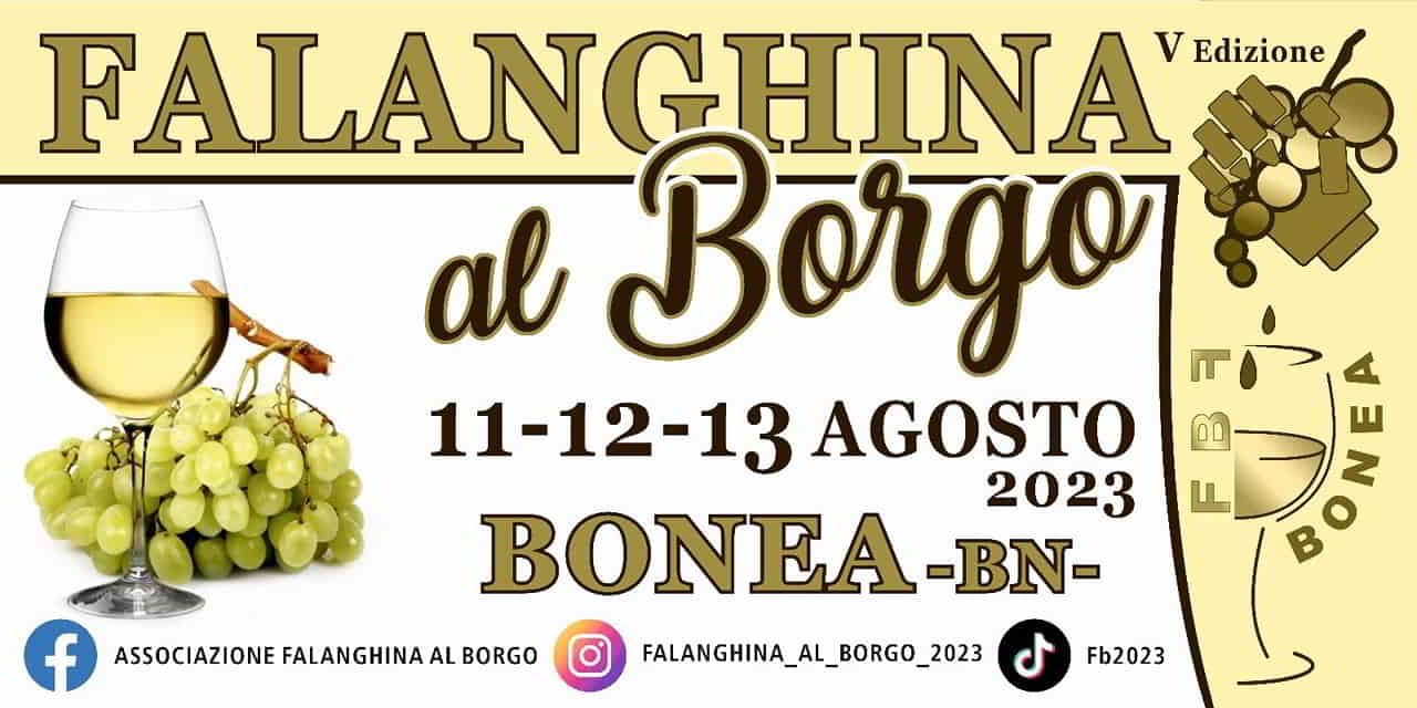 Nei giorni 11-12 e 13 Agosto 2023, a Bonea in provincia di Benevento torna l’evento Falanghina al Borgo, a cura dell’Associazione Falanghina al Borgo.