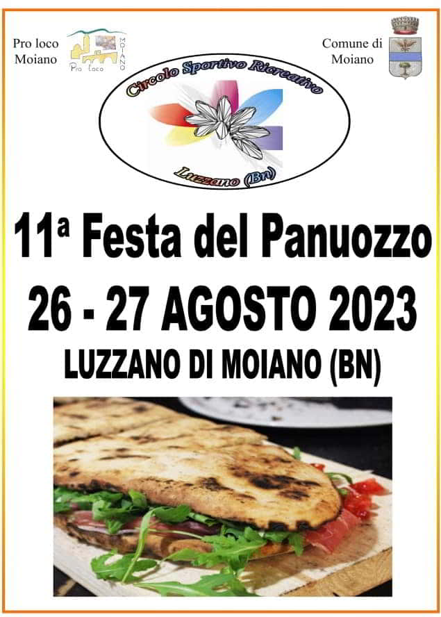 Il Circolo Sportivo Ricreativo, la Pro Loco e il Comune di Luzzano presentano l’11ma Festa del Panuozzo il 26 e 27 Agosto 2023 a Luzzano
