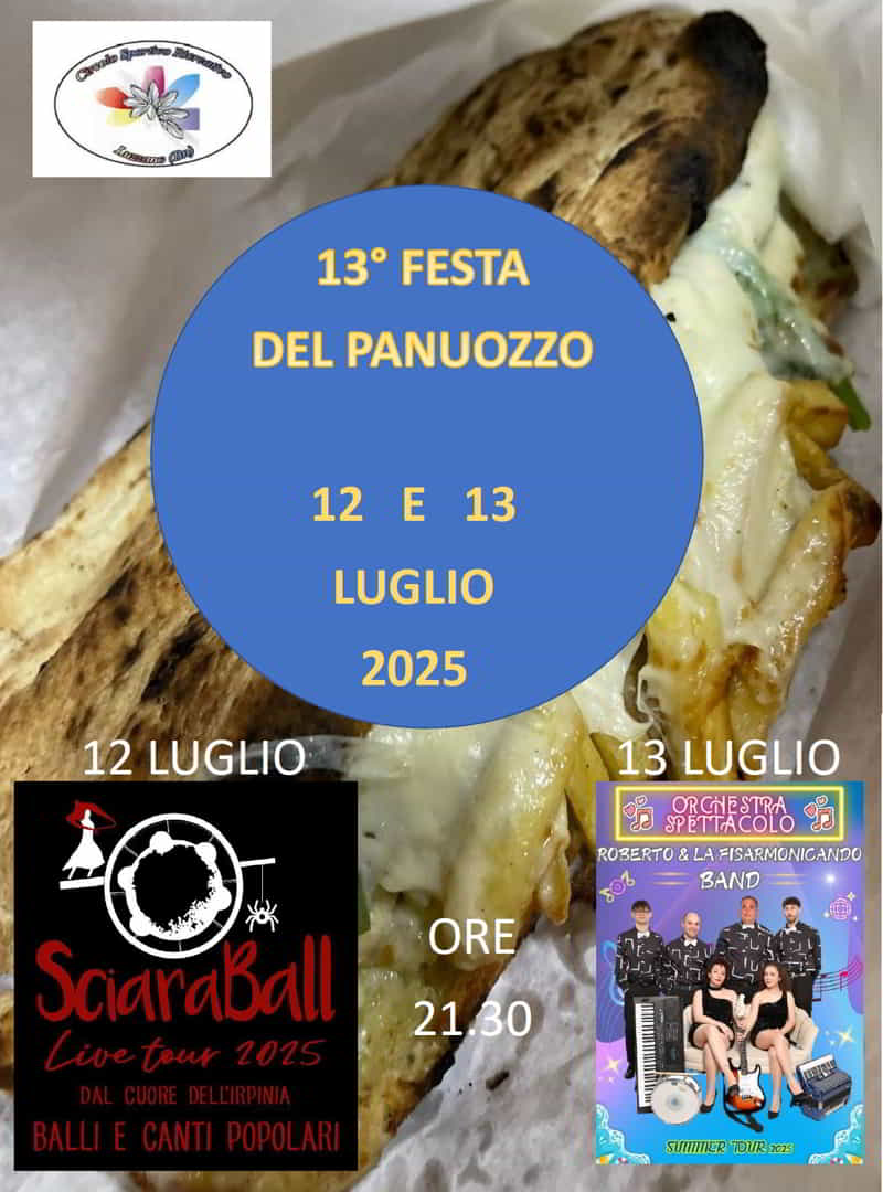 Il Circolo Sportivo Ricreativo, la Pro Loco e il Comune di Luzzano presentano la 13 ma Festa del Panuozzo il 12 e 13 Agosto 2025