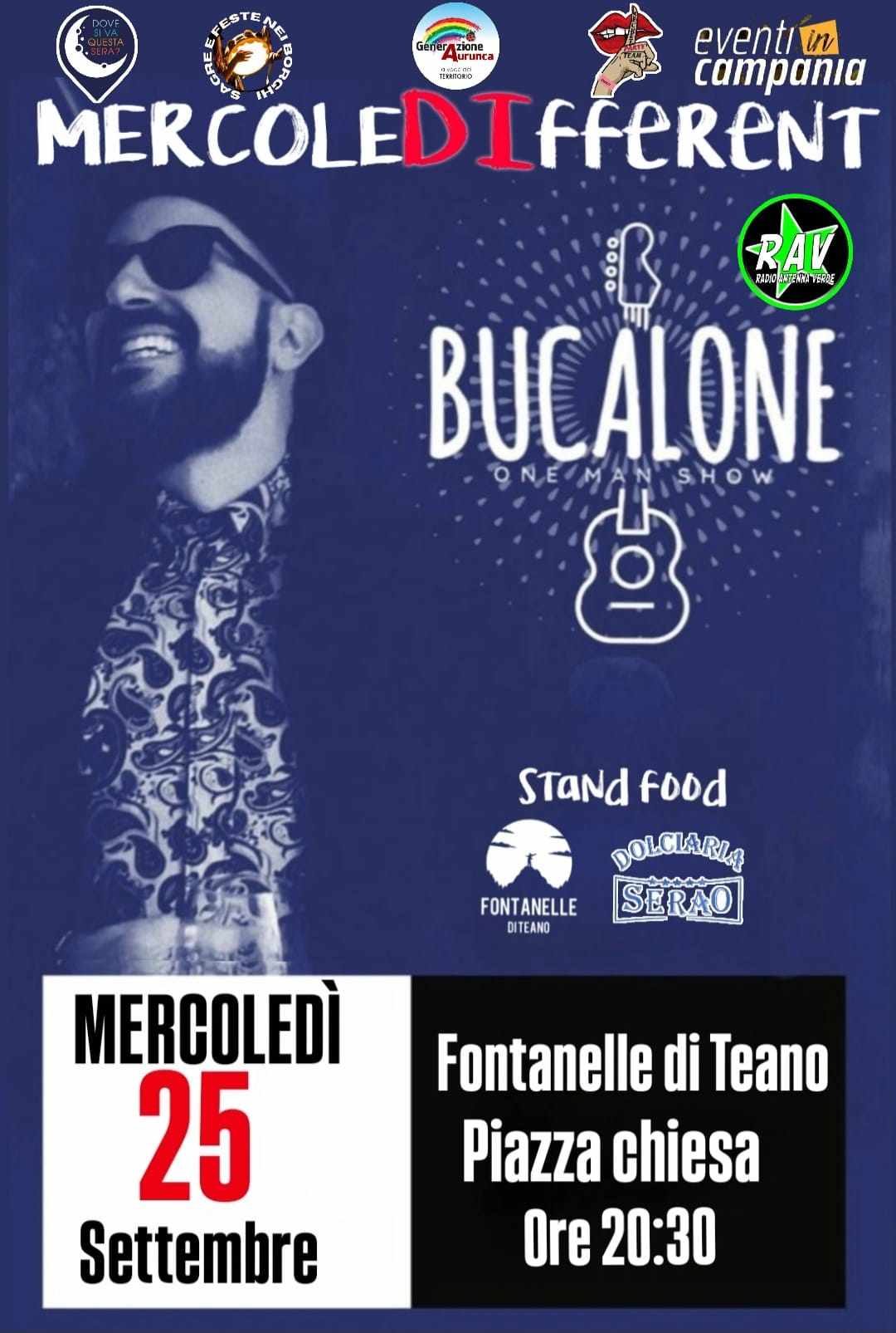 A Fontanelle di Teano in provincia di Caserta, il 25 Settembre 2024 ci sarร lo spettacolo Bucalone One Man Show. Bucalone nel Lazio Meridionale รจ
