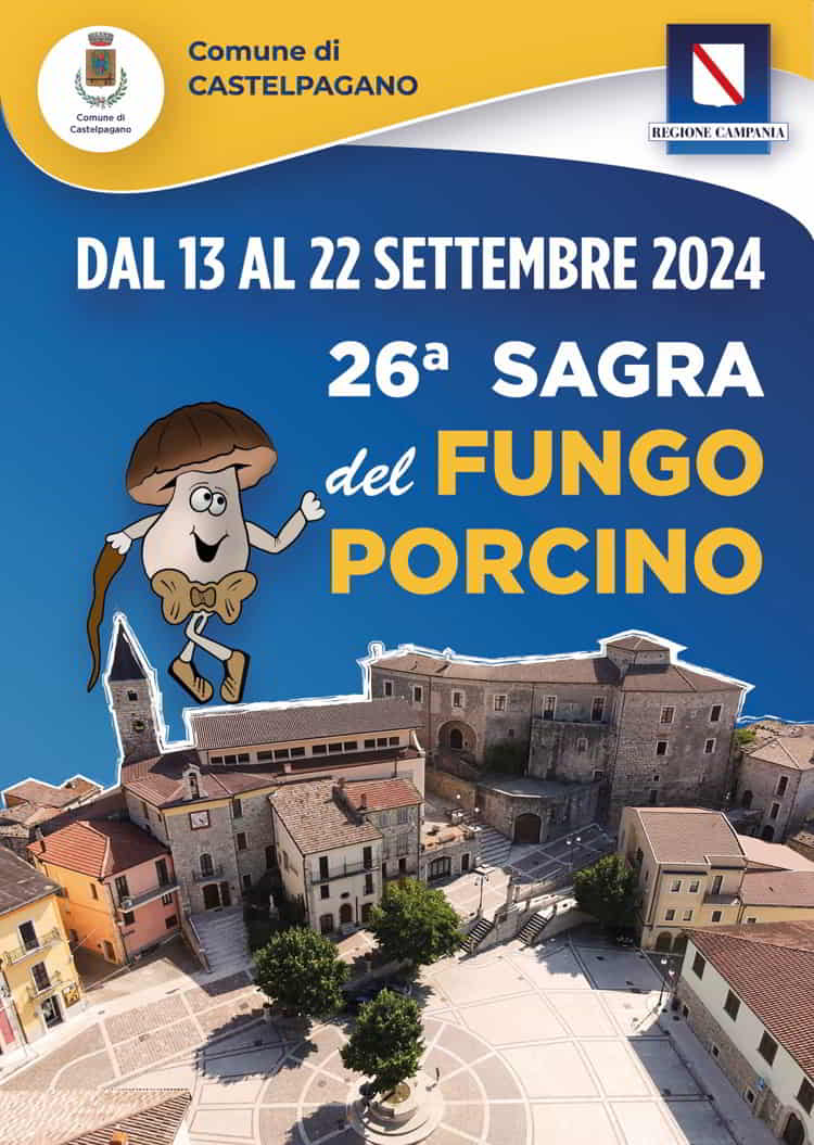 Il Comune di Castelpagano in provincia di Benevento, presenta la 26 esima edizione della Sagra del Fungo Porcino dal 13 al 22 Settembre 2024. La