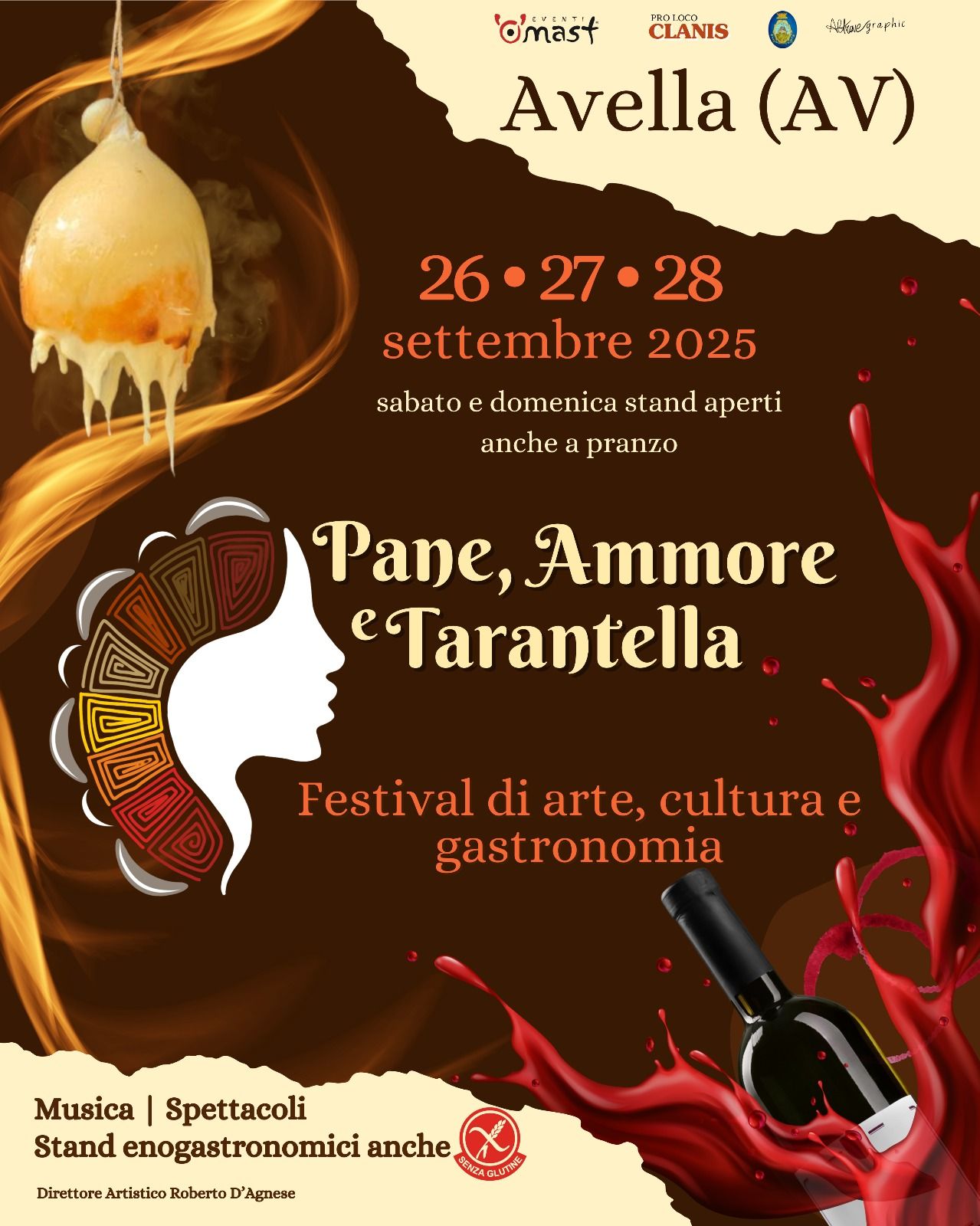 Omast, La Pro Loco Clanis e la comunità organizza l’evento Pane Ammore e Tarantella, il 26, 27 e 28 Settembre 2025, ad Avella in provincia