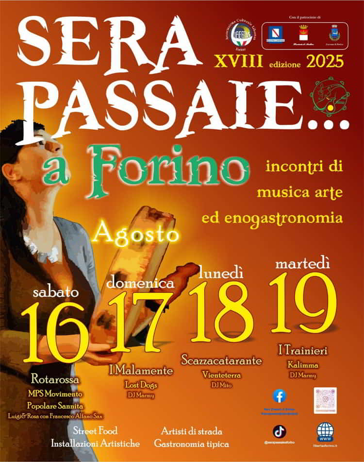Dal 16 al 19 Agosto 2025, torna con la sua 18 esima edizioneΒ Sera Passaie…a Forino, a Forino in provincia di Avellino.