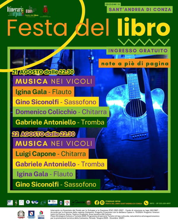A Sant’Andrea di Conza, in provincia di Avellino, andrΓ di scena la Festa del libro, il 21 e 22 Agosto 2025.