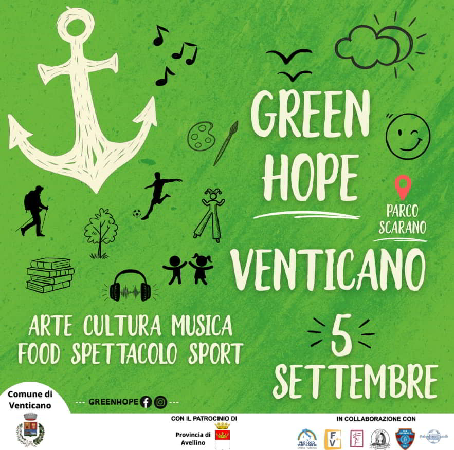Il 5 Settembre a Venticano in provincia di Avellino, presso il Parco Scarano andrΓ di scena l’evento Green Hope: un percorso di laboratori, conversazioni e