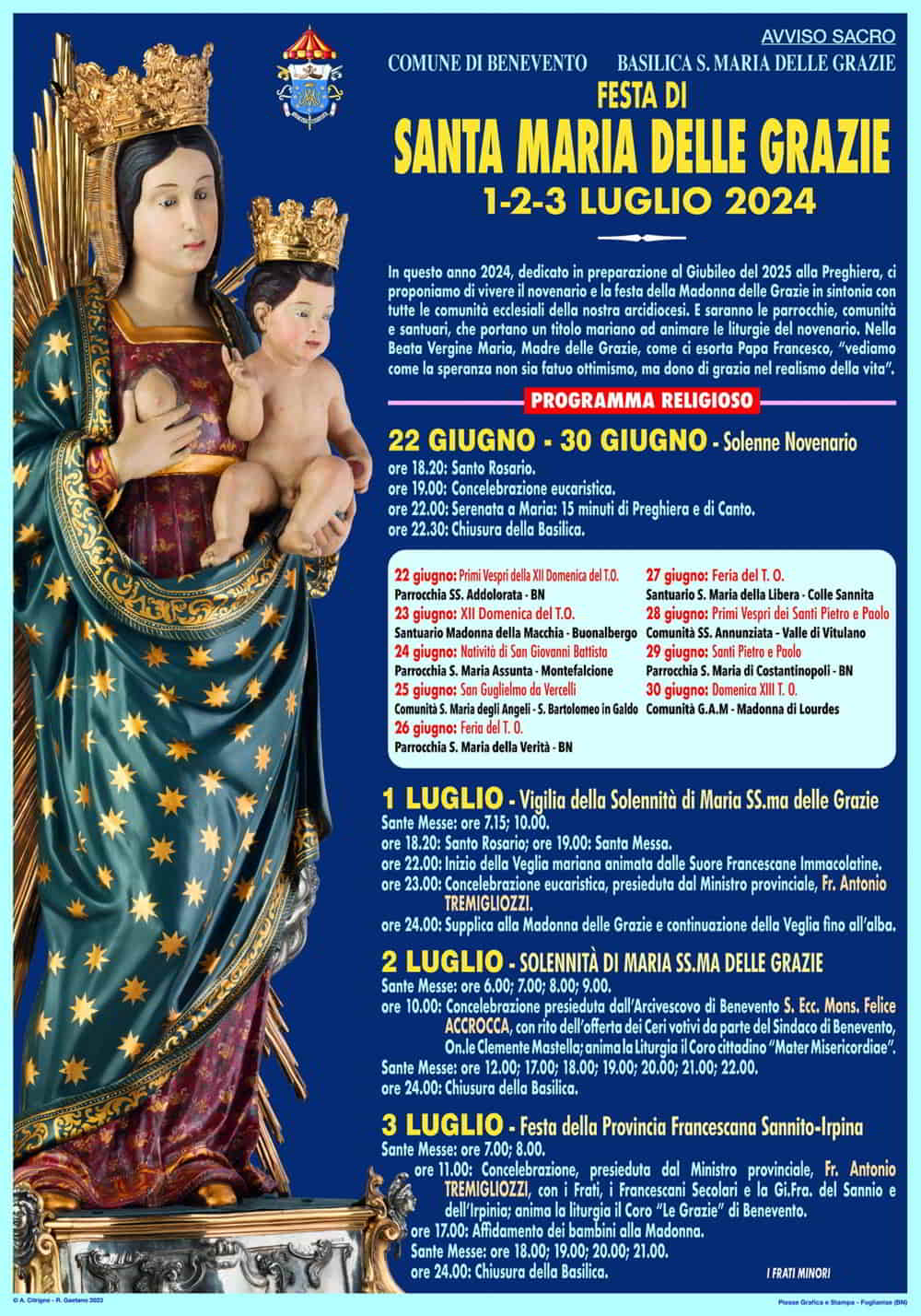 Il comune di Benevento e la Basilica della Madonna delle Grazie organizza, il 1-2-3 Luglio 2024 la Festa di Santa Maria delle Grazie.
