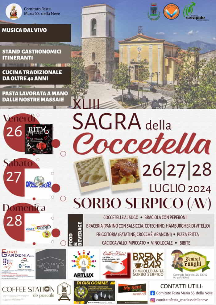 Anche per il 2024, a Sorbo Serpico, in provincia di Avellino, si rinnova la tradizione gastronomica con la XLII ma edizione della Sagra delle Coccetelle,