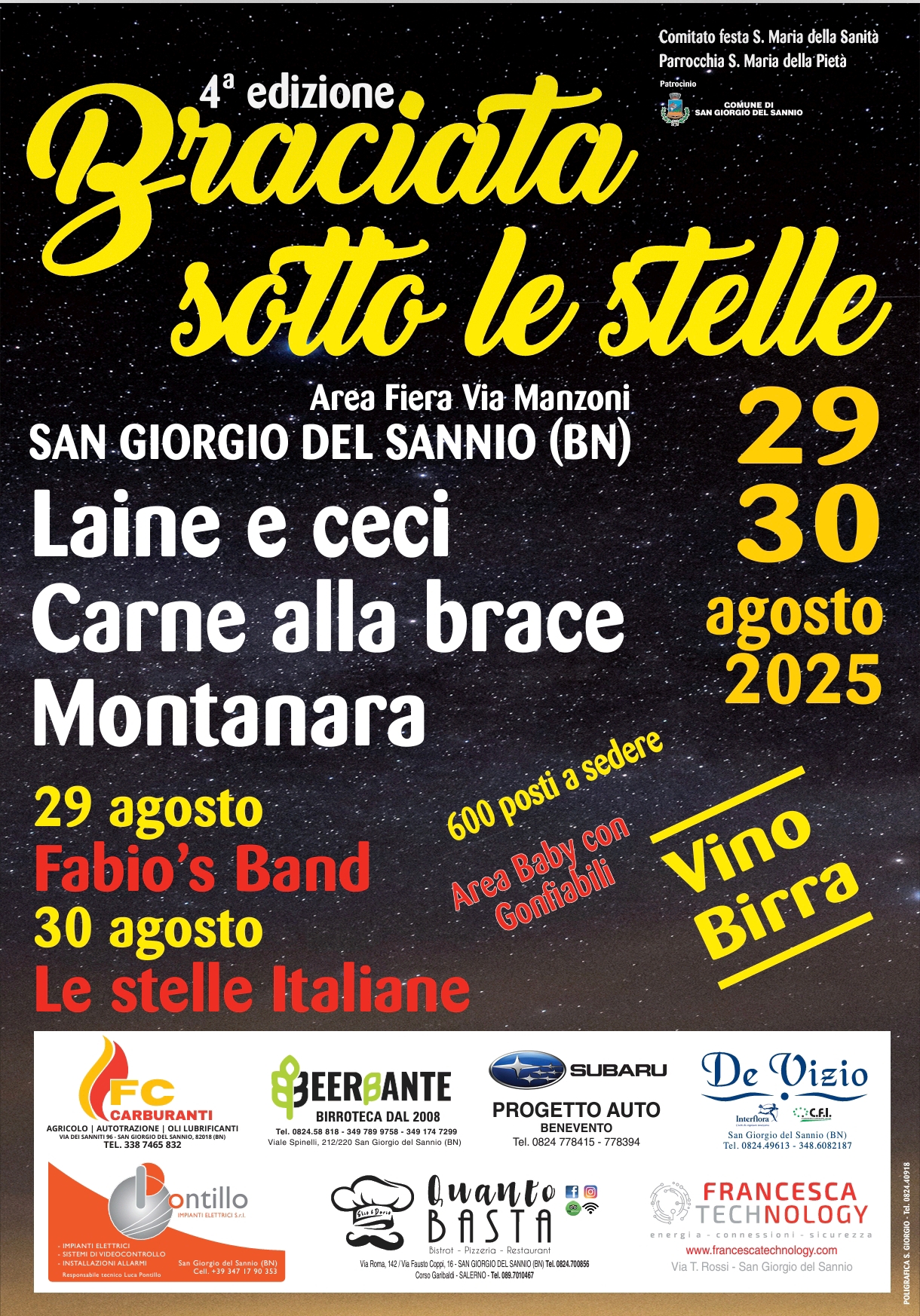 La Parrocchia S. Maria della PietΓ di Ginestra in collaborazione con il Comune e la Pro Loco di San Giorgio del Sannio presenta Braciata sotto