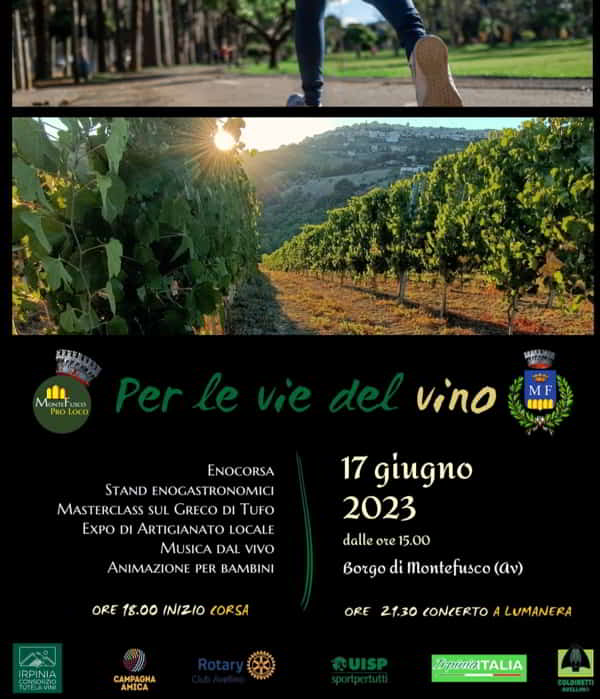 La Pro Loco di Montefusco il 17 Giugno ospiterà l’evento “Per le Vie de Vino”. Programma: ore 15:00 apertura Monumenti ore 16:00 apertura Stand Enogastronomici