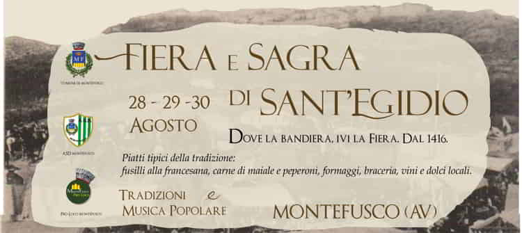 La Pro Loco presenta la con il patrocinio del comune organizza la Fiera e Sagra di Sant’Egidio, dove la bandiera ivi la fiera, a Montefusco