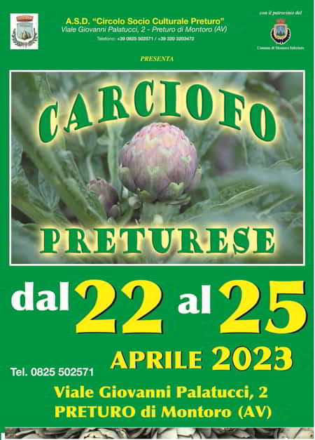 L’A.s.d. “Circolo Socio Culturale” Preturo con il patrocinio del comune di Montoro organizza la XXIII edizione della Sagra Preturese del Carciofo, dal 22 al 25