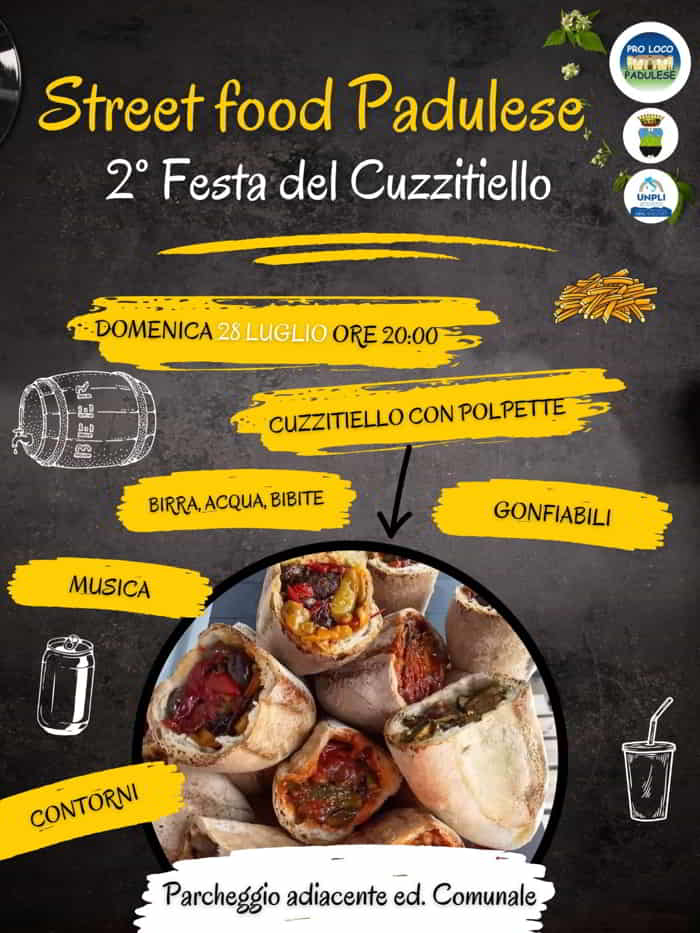La Pro Loco presenta l’evento Street Food Padulese – Festa del cuzzitiello , a Paduli in provincia di Benevento, il 28 Luglio 2024 dalle ore
