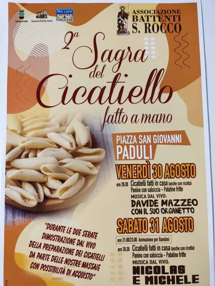 La pro loco e il comune di Paduli presentano la Sagra della Mortadella artigianale, prodotta da Rubino Salumi. Nel corso di questi giorni sarΓ mostrata