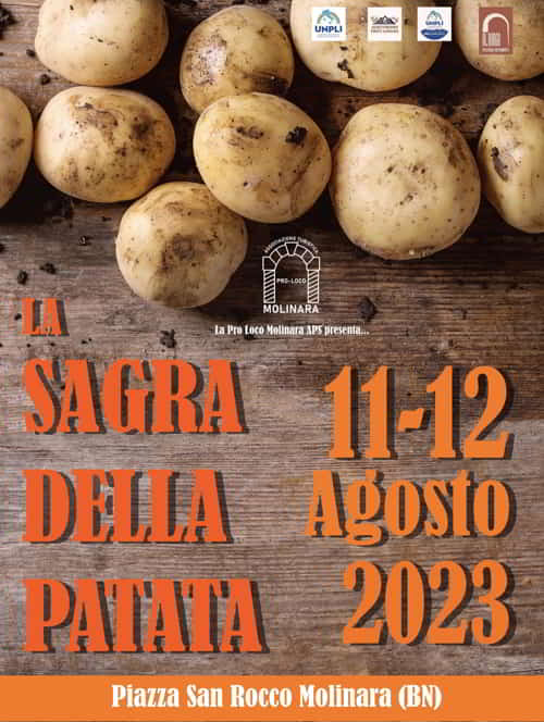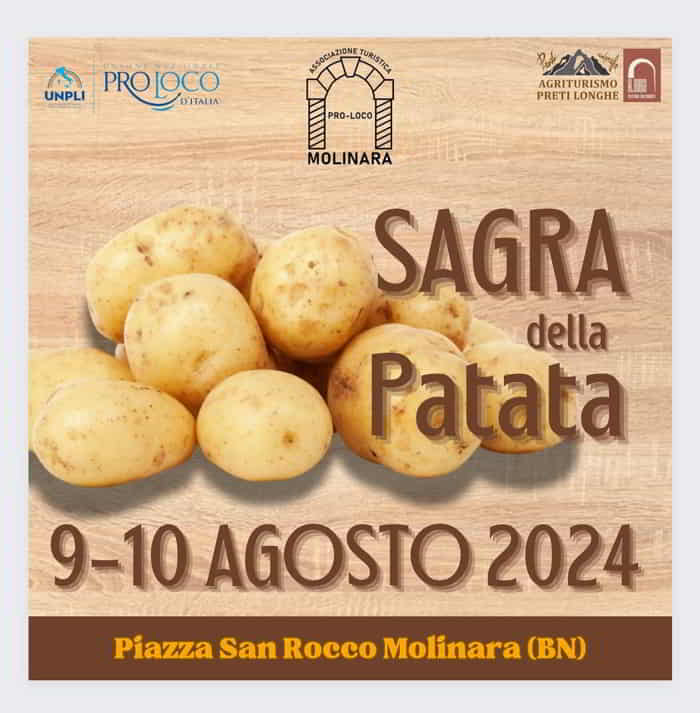 La Pro Loco Molinara Aps presenta “La Sagra della Patata”. L’evento si terrร nei giorni 9 e 10 Agosto in Piazza San Rocco.